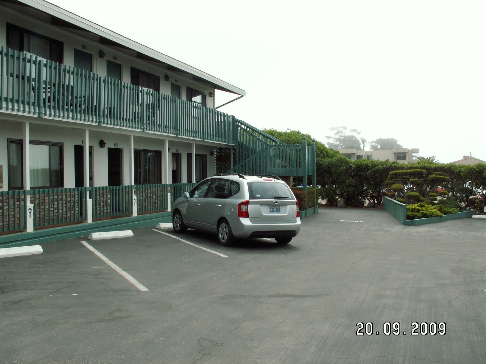 Keldjur och vår bil utanför hotellet. Det var svårt att slita sig från Morro Bay, men nu ska vi till