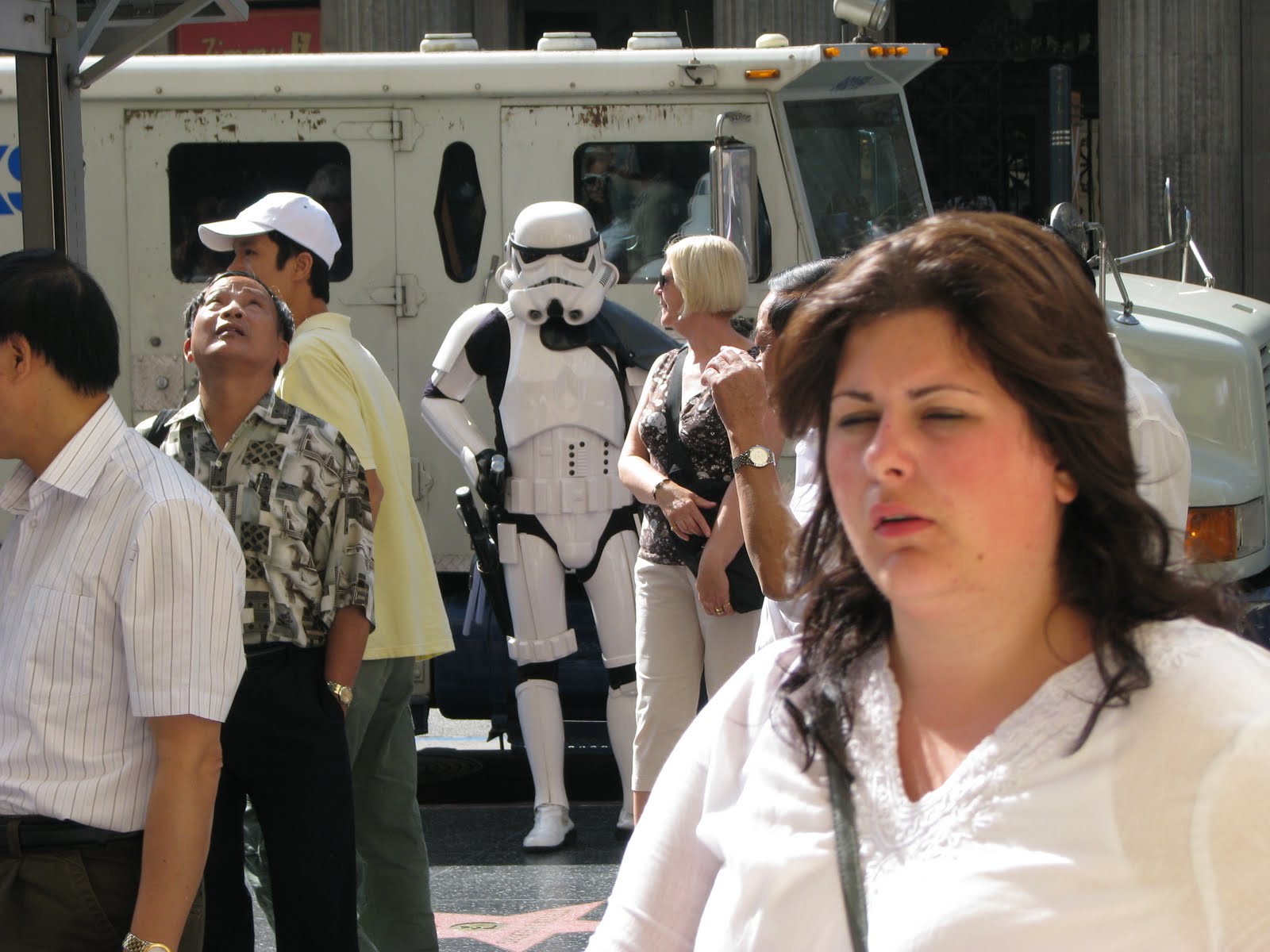 Här är det stor grej att kunna klä ut sig till en känd karaktär och få folk att betala en dollar för att bli fotad till sammans med den. Vi träffade på Storm trooper, Captain Jack sparrow, Marilyn, Michael, Chuckie, Pokahontas, Shrek,Samuel Jackson, Snoop Dog, Spindelmannen är dom jag kan komma ihåg.