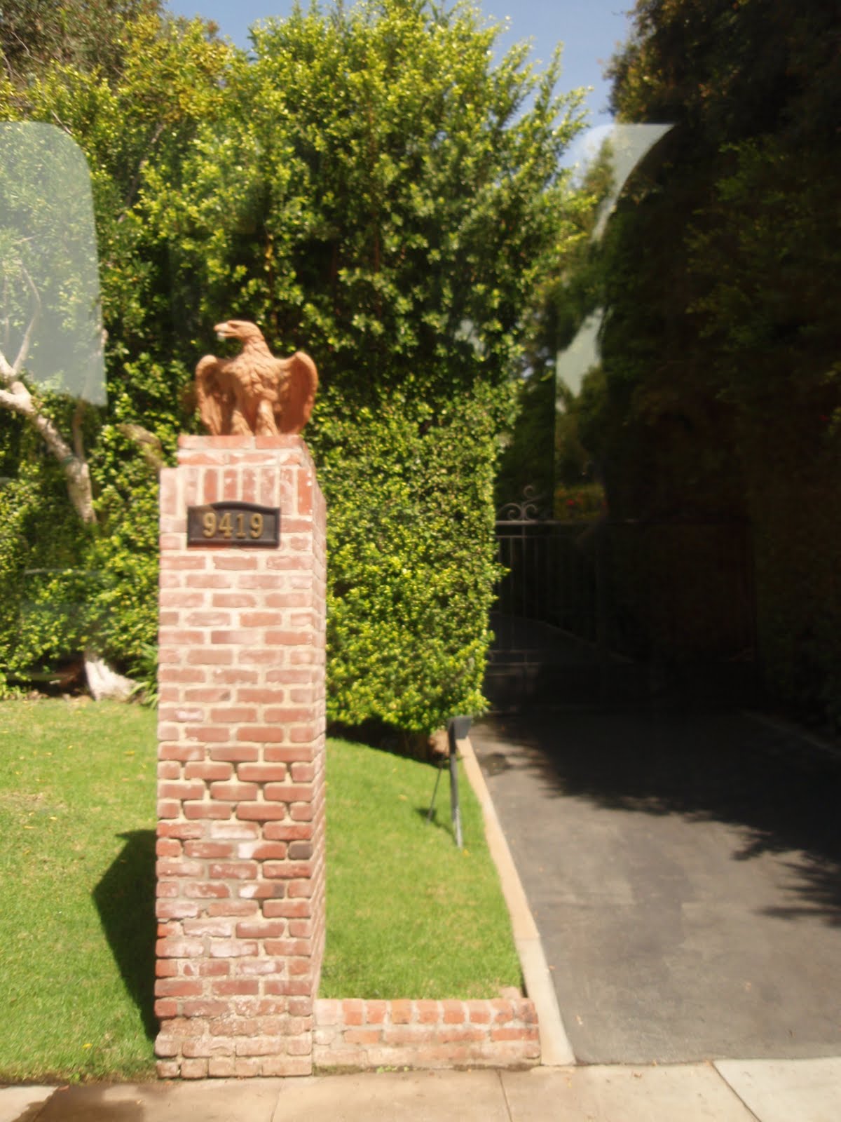 Utanför Michel Jacksons hus står några människor. Blommor och brev ligger runt brevlådan… Vi kör också förbi hotellet där Marilyn dog, och huset där Elvis bodde. Högt upp på himlen seglar ett par falkar, är dom där och kollar läget?