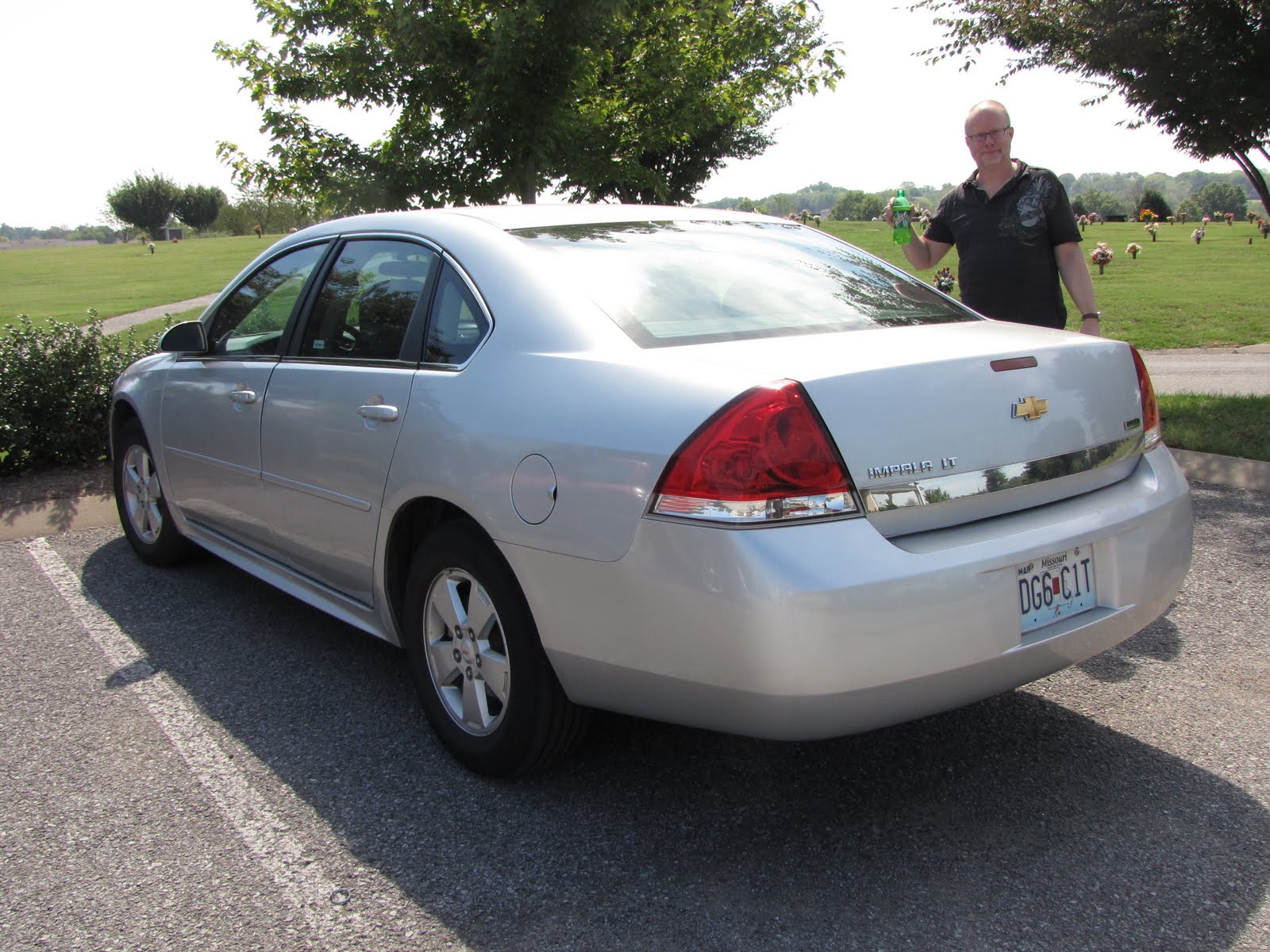 Vi fick en maffig Cheva Impala. INTE lika snygg som dom på 70-talet, tyvärr, men med en stor motor som knappt hörs, man tror knappt bilen är igång, så nu blir det ÅKA AV!