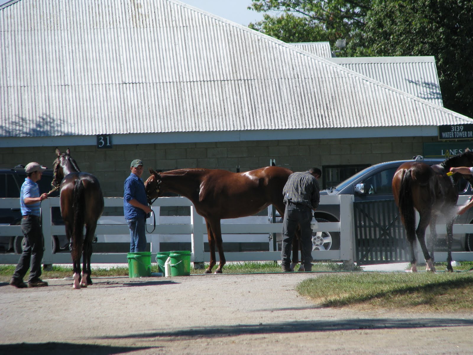 Nu har vädret blivit kanon! Sol och blå himmel, ca 20 grader! Vi kör ut mot Lexingtons galoppbana Keeneland där åringsauktionerna är i full gång! Vi tar en god, men liten hamburgare (ups! hoppas det inte var häst!)