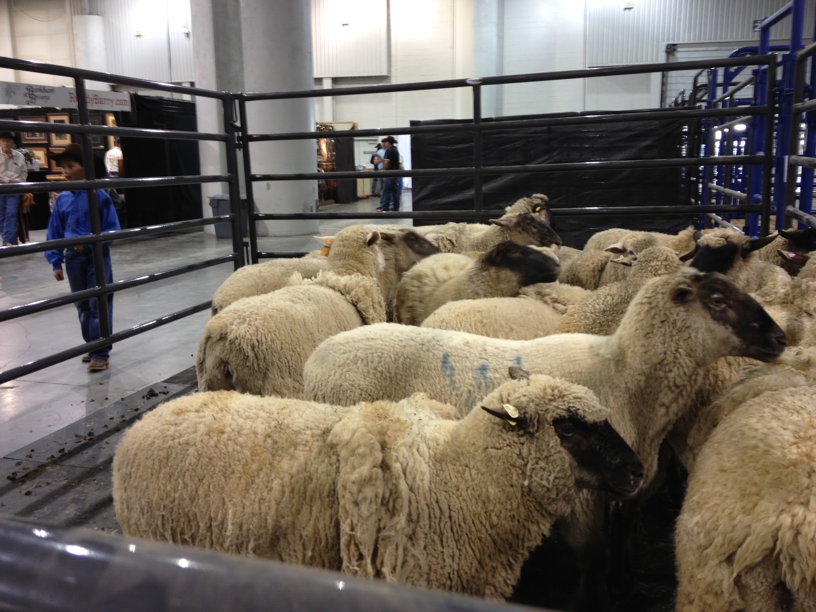 Efter frukost går vi till mässan som öppnar kl.9 och har en ”doorbuster” varje dag, freebee till de första 500 som kommer genom entreen. Vi får varsin keps! Utanför står två tjurar i varsin hage. Den ena har kört upp hela den perfekta gräsmattan med hornen ;o)
