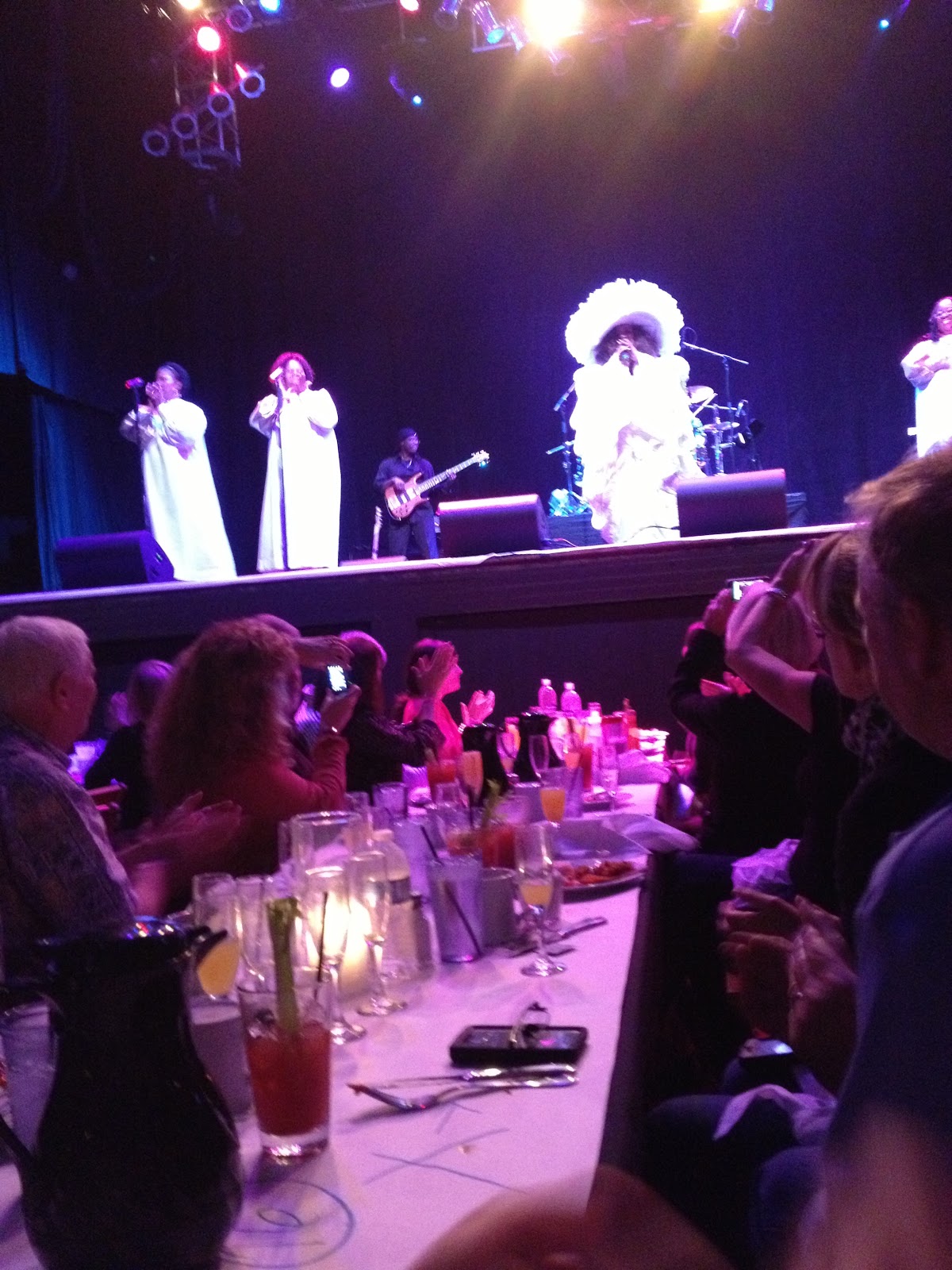 Showen består av 6 gospel-kvinnor och ett band med trummor, orgel och bas. Hela publiken är med hela tiden, klappar i takt, viftar med servetten och sjunger med. Hallelulja and please pass the bisquits!