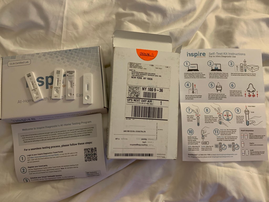 När vi sen checkade in fanns paketet som kostade $2 att få. Tidigare hade vi bokat en testtid där man skall sitta på zoom och bli övervakad när man gör testen.