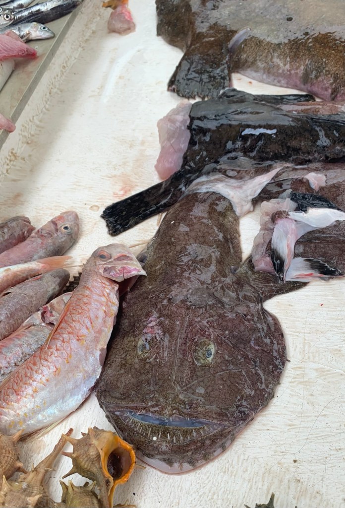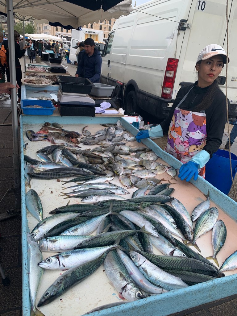 Vi har strosat drygt en mil i stan idag, Marseille är en ganska kuperad stad, mycket trappor och förbi och igenom kyrkor, båtar, fiskmarknad, trånga gränder och hela tiden en doft av antingen nybakat bröd eller skit… Mycket Graffiti av den sämre kvaliteten.