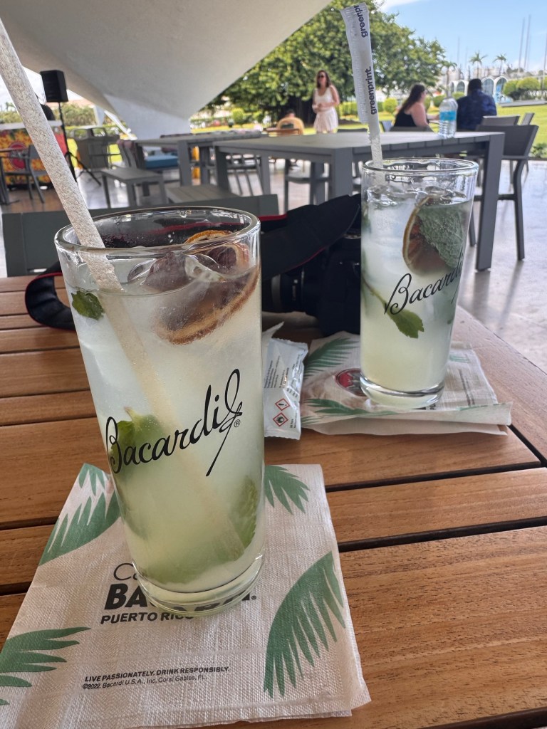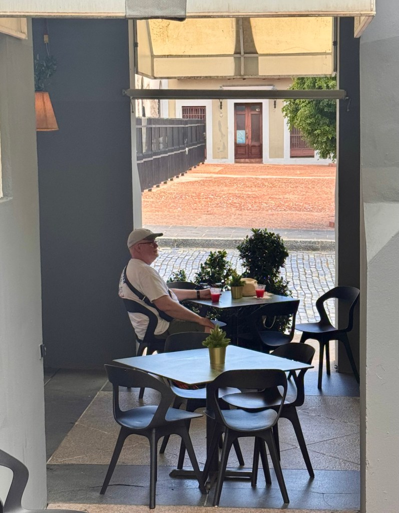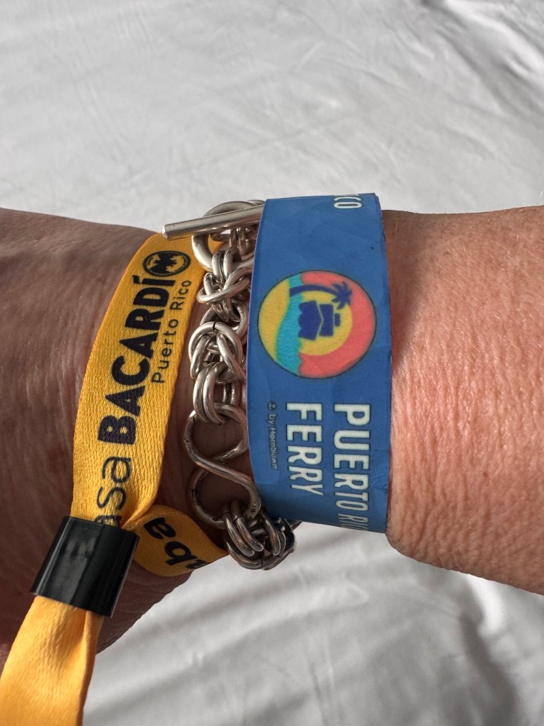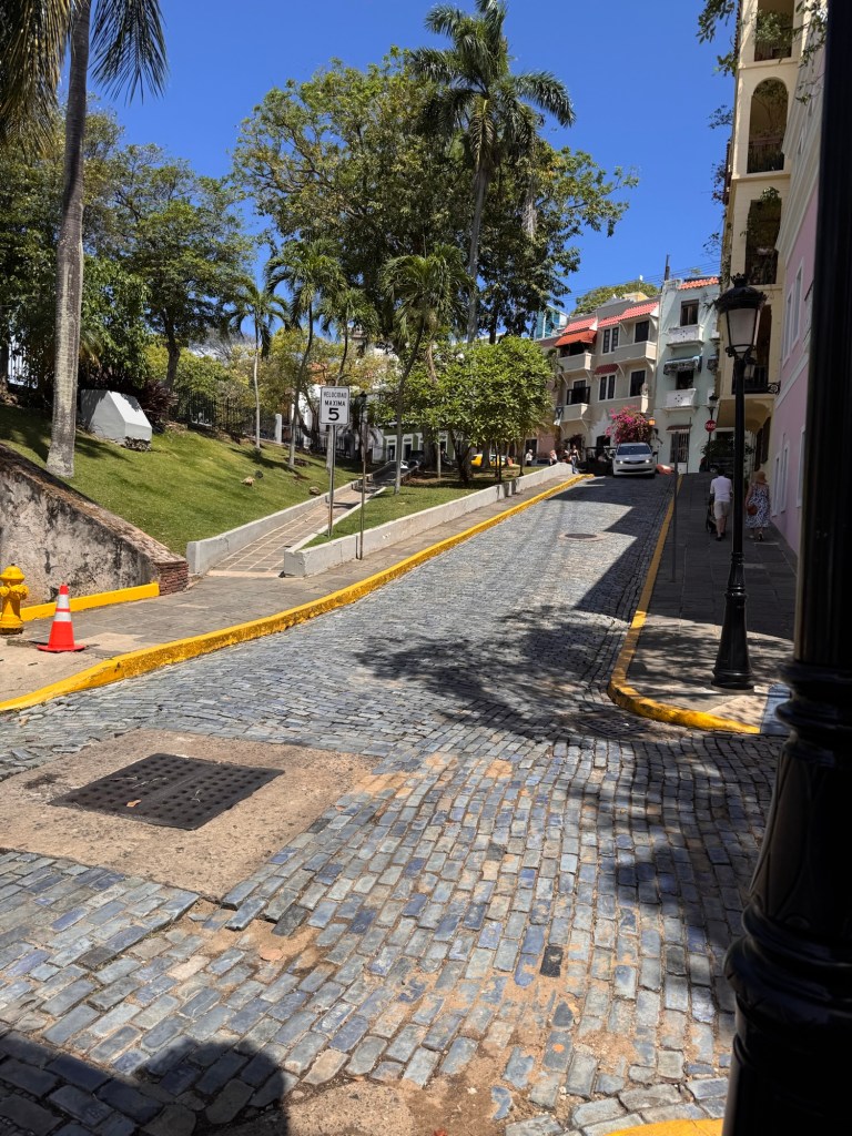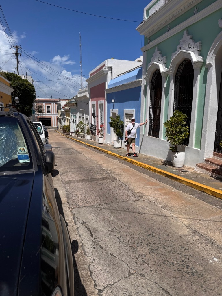 Vi tar en Uber till Old town, San Juan. Tar 10 min frĂ„n vĂ„rt hotell. Underbart vĂ€der, ca 28 med hög luftfuktighet och en flĂ€ktande bris. Stora, mörka hotfulla moln in över land, ser ut som det ösregnar dĂ€r borta, men vi har strĂ„lande sol. NĂ€r man inte Ă€r van, eller inte har lĂ€rt sig av sina misstag, och bara vill suga i sig sĂ„ mycket sol som möjligt, vinden kyler och trotts 50+ solskydd ser jag ut som en zebra pĂ„ ryggen, ganska snyggtđ.