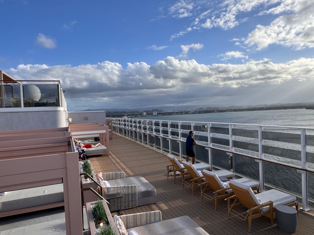 Vi har betalat extra för att komma frĂ„n âpöbelnâ pĂ„ pool-dĂ€cket. Avdelningen heter Vibe och ligger högst upp pĂ„ 18:e dĂ€ck och Ă€r bara för +18 Ă„ringar (ingen övre grĂ€ns)đ
