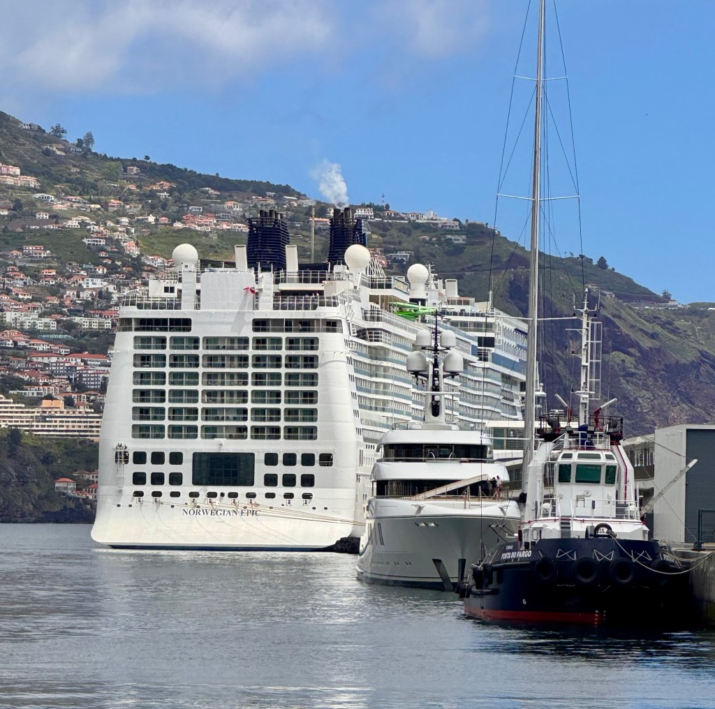 Dusch och balkonghĂ€ng och vi fĂ„r underhĂ„llning av runt hundra tjejer som övar en dans/marsch pĂ„ kajen, vid sidan av skeppet. Samma lĂ„t om och om igen, en kille med högtalare pĂ„ hjul följer dom. Dom Ă€r duktiga och blir glada nĂ€r âpublikenâ pĂ„ skeppet applĂ„derar đđŒđ„ł
